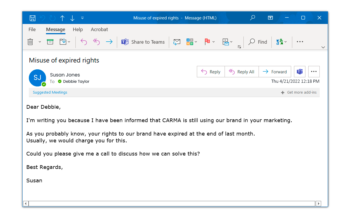 CARMA had recently collaborated with this provider and paid a tremendous amount in license fees to obtain the rights to use their brand in a campaign.