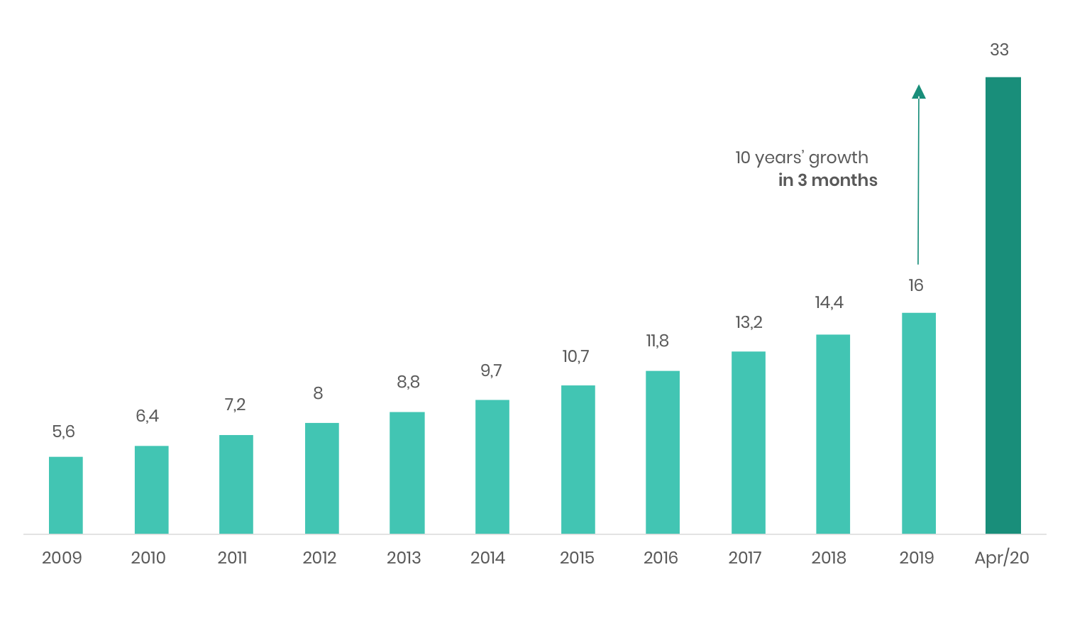 US e-commerce penetration experienced ten years’ growth in 3 months. Source: McKinsey analysis