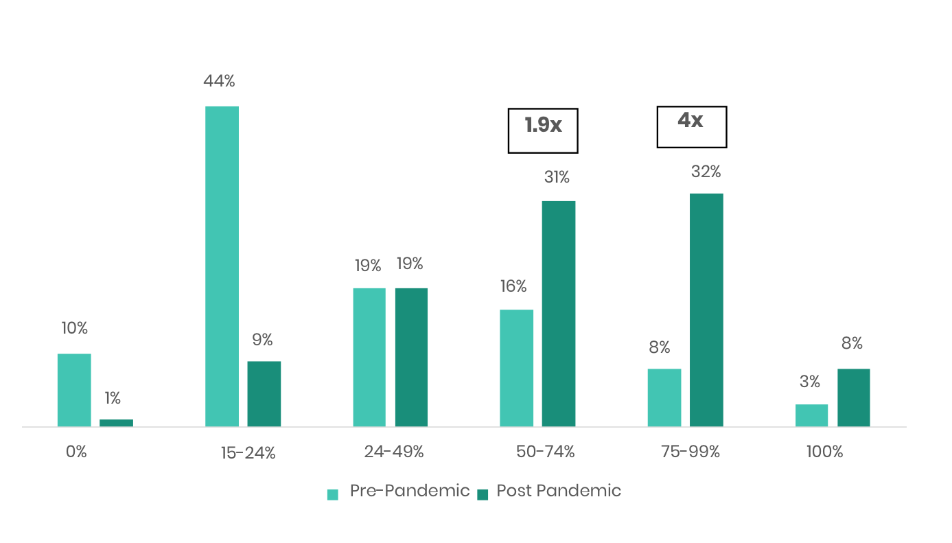 Before the pandemic, just 27 percent of respondents reported conducting more than half of their sales activities virtually.